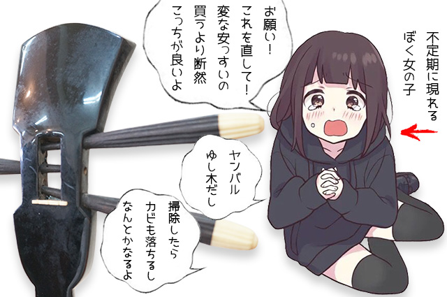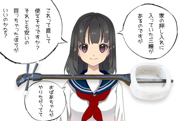 オバァ用の三線を買うか直すか悩んで直す